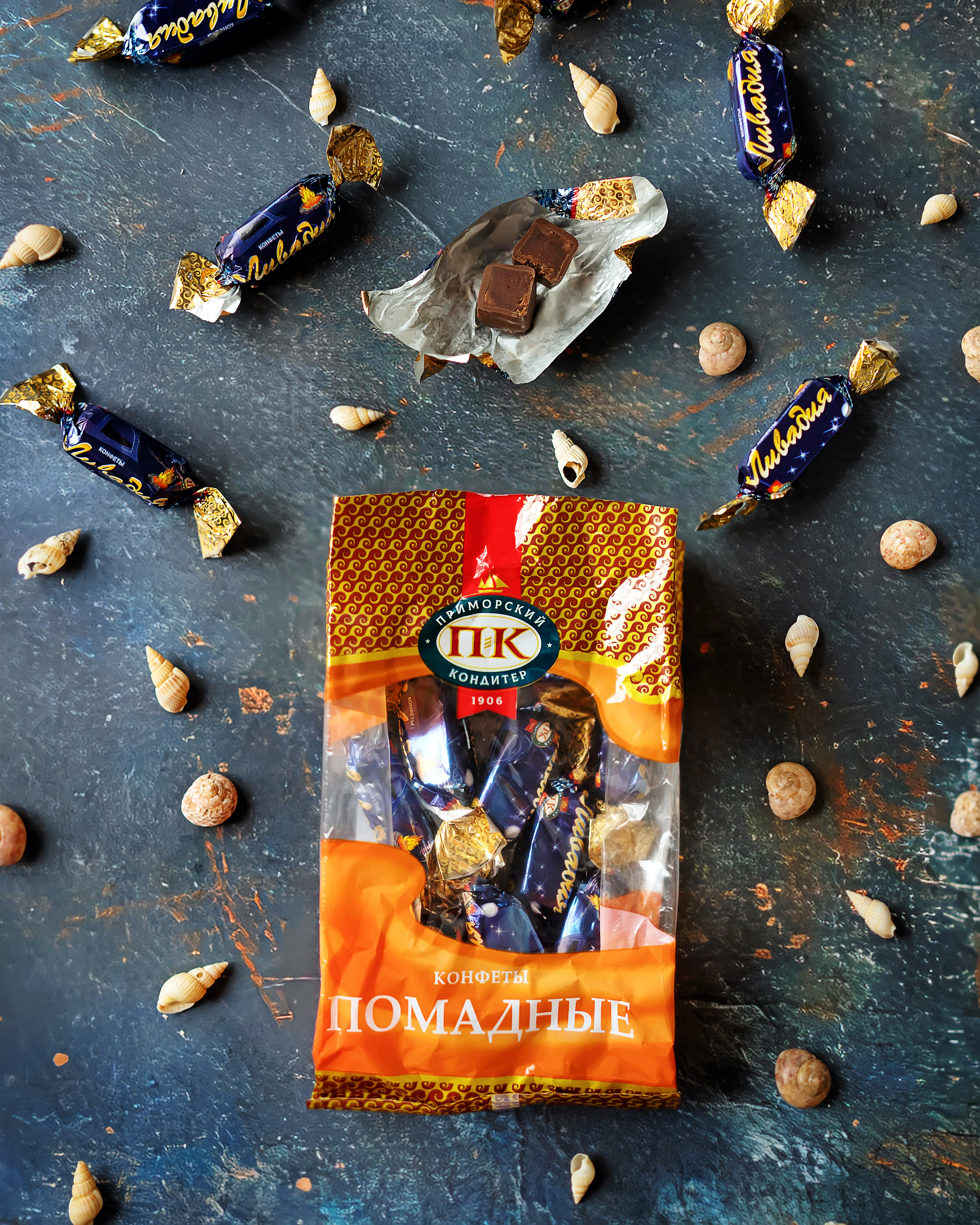 Конфеты с помадным корпусом с добавлением какао–порошка, яблочного пюре и миндального ароматизатора