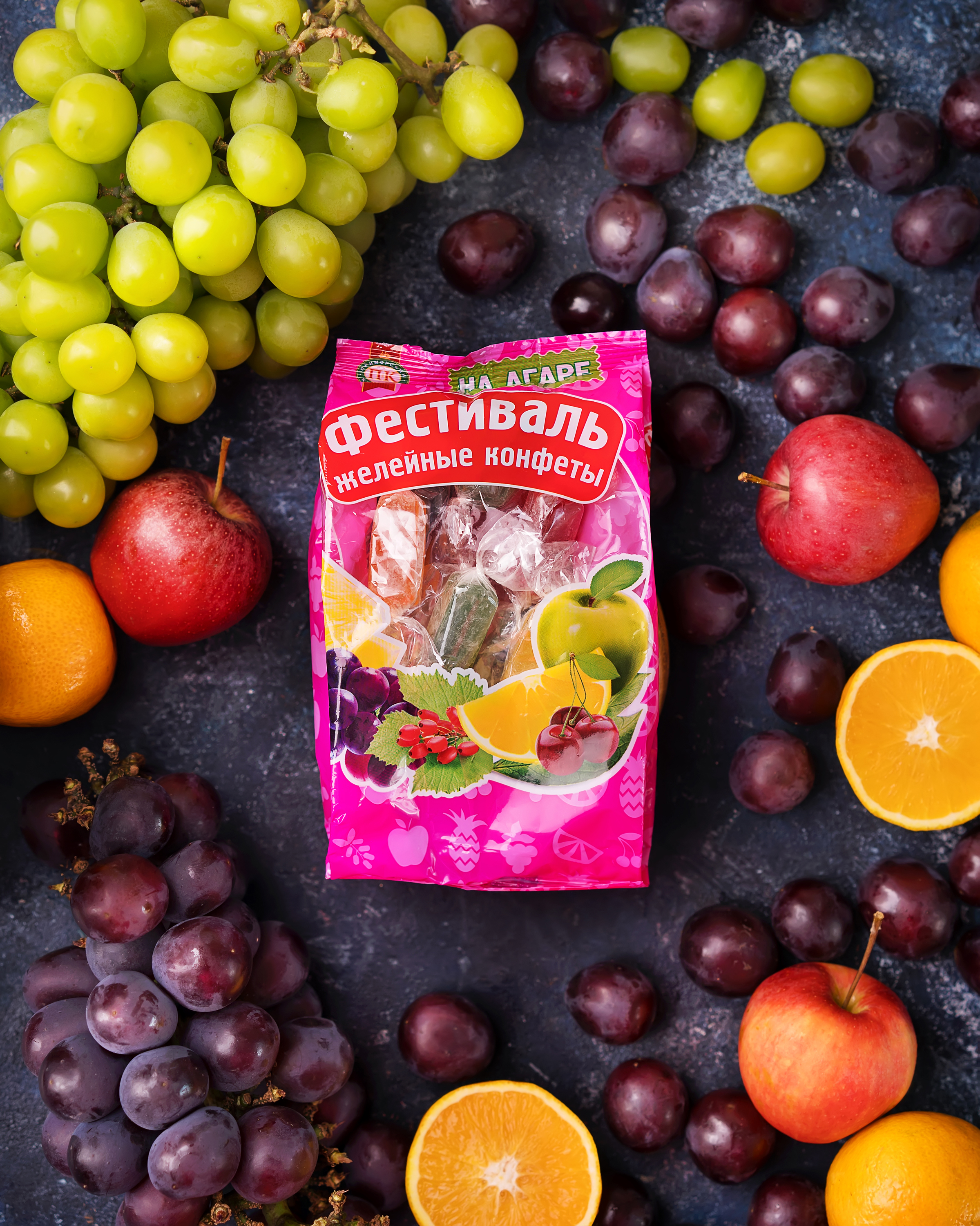 Конфеты желейные на основе агара со вкусами ананаса, апельсина, лесных ягод, винограда, вишни, яблока