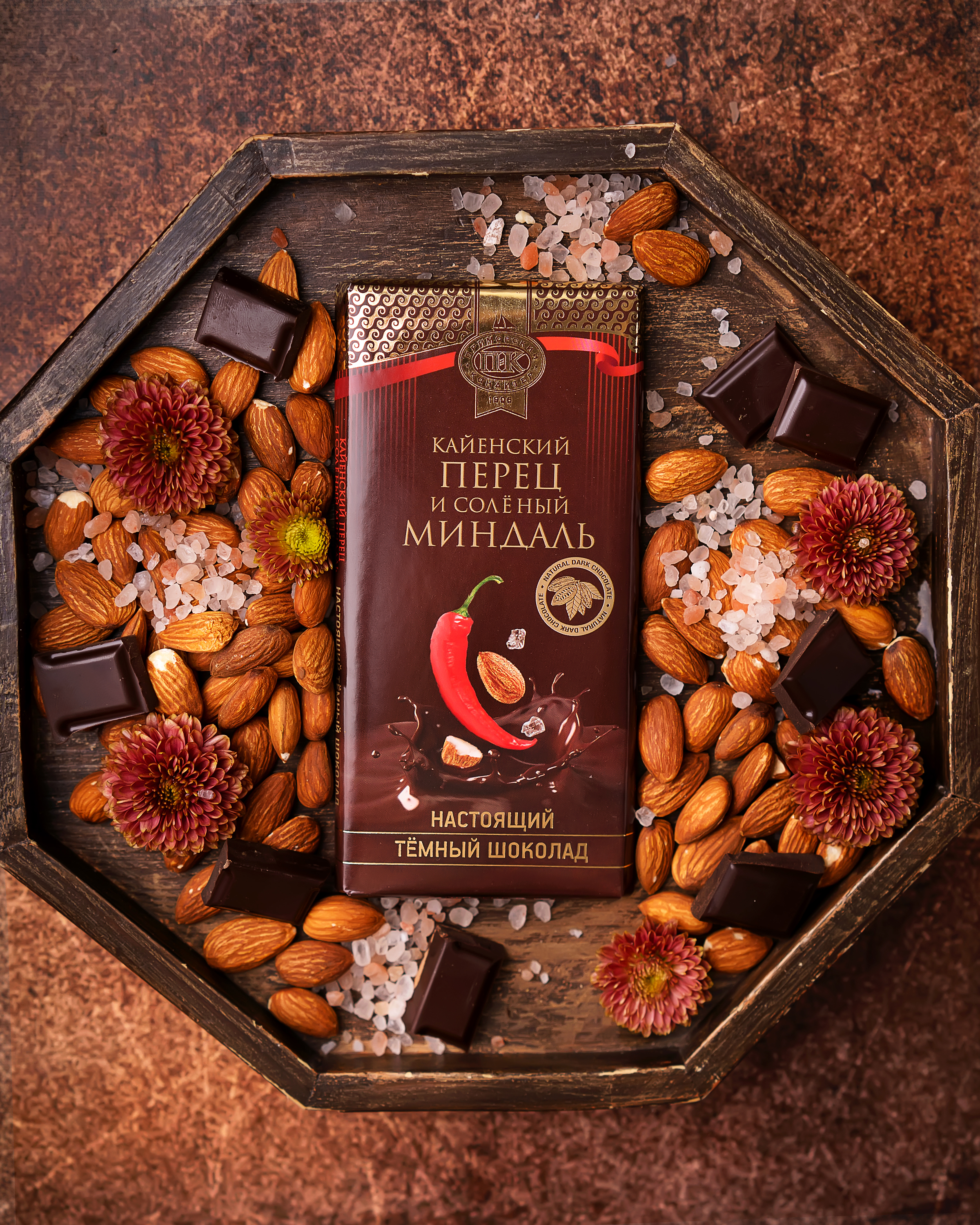 Тёмный с кайенским перцем и солёным миндалём